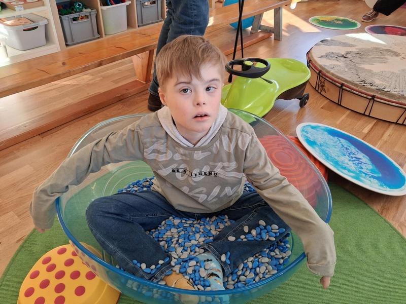 Noah freut sich über die neuen speziellen therapeutischen Materialien; Fotos: © Radlwolf